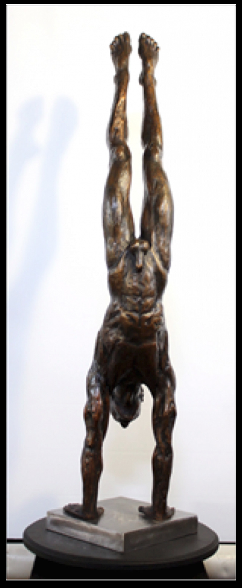 There are many ways in which I can start a sculpture. Usually movement is the spark that inspires, but lately just a simple stillness (as in yoga pose) can also be the trigger. As humans we can all identify with the emotions and feelings irrespective of our backgrounds. Therefore the human form has become my universal language in which I prefer to express myself. The extreme poses portray extreme emotions. The figures are often androgynous. Often, when I start sculpting, the rhythm, feeling and line are the important factors. Only towards the end do I have to decide on a gender and by then usually the sculpture itself has determined its own sex.