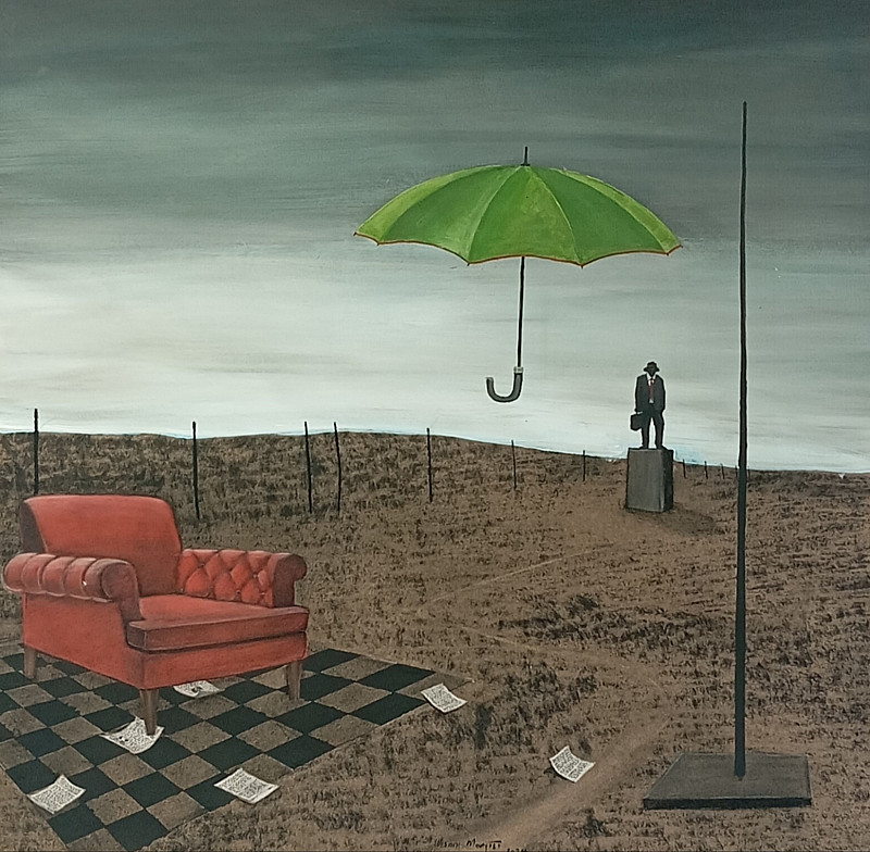 The surrealistic landscapes I depict function as liminal spaces, inviting the viewer to embark on a surrealistic journey of contemplation and self-reflection. These imaginative settings provide a counterpoint to the challenges of the present, evoking a sense of nostalgia and longing for the security of the past, while also containing the potential for growth, understanding, and new beginnings. Ultimately, my artistic practice is an exploration of the universal human experience – the tension between individual and collective, the desire for meaning and connection, and the perpetual negotiation between familiarity and the unknown. By engaging with these profound themes, I hope to cultivate empathy, introspection, and a deeper appreciation for the nuances that define our shared existence.