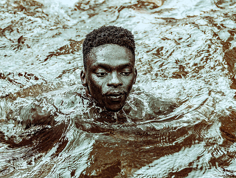 The artwork titled Swim Boy Swim conveys a powerful message of resilience, perseverance, and determination in the face of life's challenges. By focusing on the act of swimming against difficult tides, the piece seems to symbolize the struggles and hardships people encounter in life. It highlights the importance of resilience and the power of not giving up, even when the "tides" seem too strong to overcome