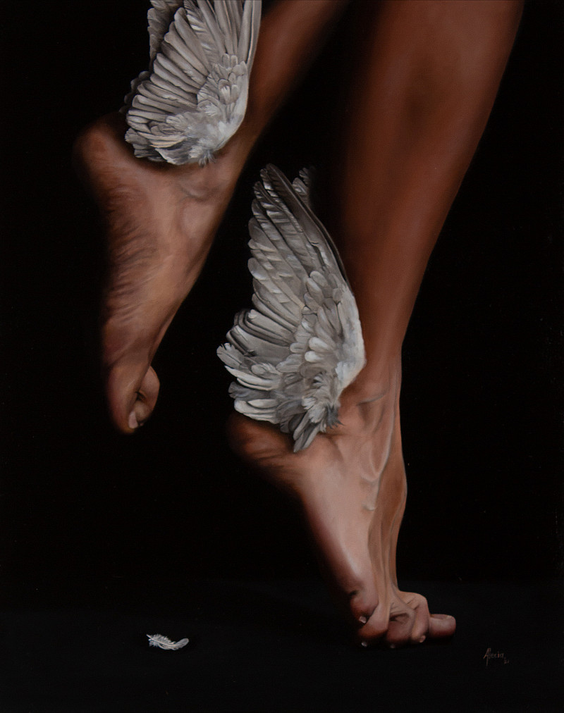 Inspired by Hermes, the winged messenger of freedom and speed, this painting of feet with wings reflects a yearning to transcend earthly limitations, just as Queen’s ‘I Want to Break Free’ expresses a powerful desire to escape conformity and embrace self-liberation. The wings symbolize a timeless, mythological impulse to break boundaries, while the feet remain grounded, representing the tension between restraint and the soul’s innate need to soar. Together, they evoke the anthem’s spirit of defiance and self-empowerment.