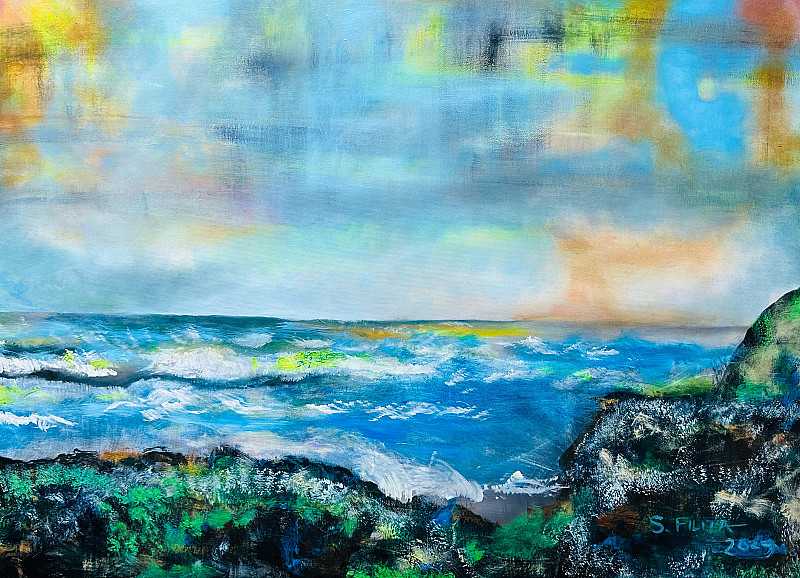This body of work is inspired by the time I spent in East London, both as a student and as an artist. During my studies, I was assigned to create landscapes for painting  Eastern Beach. This experience was particularly fascinating because landscapes were not my favourite subject, I used to enjoy doing portraits much more. However, as part of my art degree, I had to step out of my comfort zone and embrace this challenge. One of the hardest parts was capturing the landscape itself- the sand, the waves, and the beautiful coastal colours. At the time, I wasn’t focused on the beauty of the city but was nervous about whether my work would turn out well. Fortunately, my lecturer was impressed, and that moment sparked a new interest in landscapes. I began to appreciate capturing scenes from my village too, even though it had no sea. I made sure to include all the interesting elements in my work. After moving from East London to Pretoria for many years, I never thought I would return. This time, without the pressure of deadlines or assignments, I chose to revisit East London for research on public art. I challenged myself again to paint landscapes purely for the joy of capturing the day, the vibrant colours, and the natural beauty. East London and its Eastern Beach are truly beautiful places, and it is always a pleasure and an exciting experience to be around this city, enjoying its fresh coastal breeze.