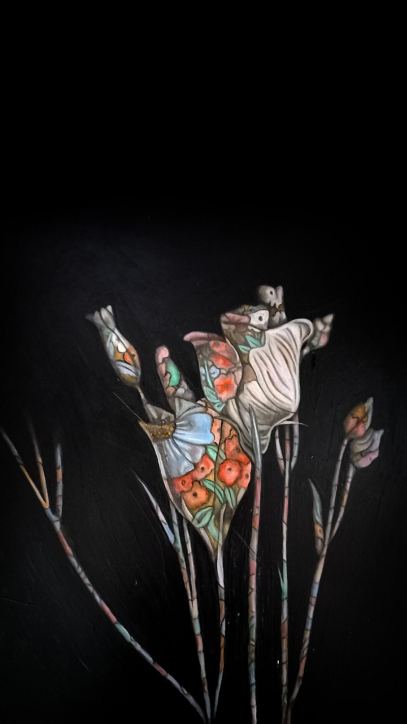 I explore the delicate balance between human intervention and the natural world through the lens of genetic modification in plants. By superimposing various flowers, I aim to question the notion of "enhancing" nature. Are we truly improving the beauty of these organisms, or are we distorting their inherent essence? The blending of flowers represents the convergence of nature and human desires, reflecting both the allure and the risks of altering life itself. What drives our need to manipulate the natural world—curiosity, control, or a desire to perfect? As we reshape the beauty of nature, we must consider the potential consequences: could these alterations irreparably change the delicate ecosystems we depend on, or even ourselves? Through this piece, I invite viewers to reflect on the ethical implications of tampering with the very fabric of life.