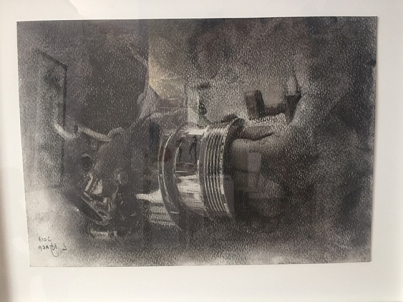 • Pen, charcoal and graphite on paper