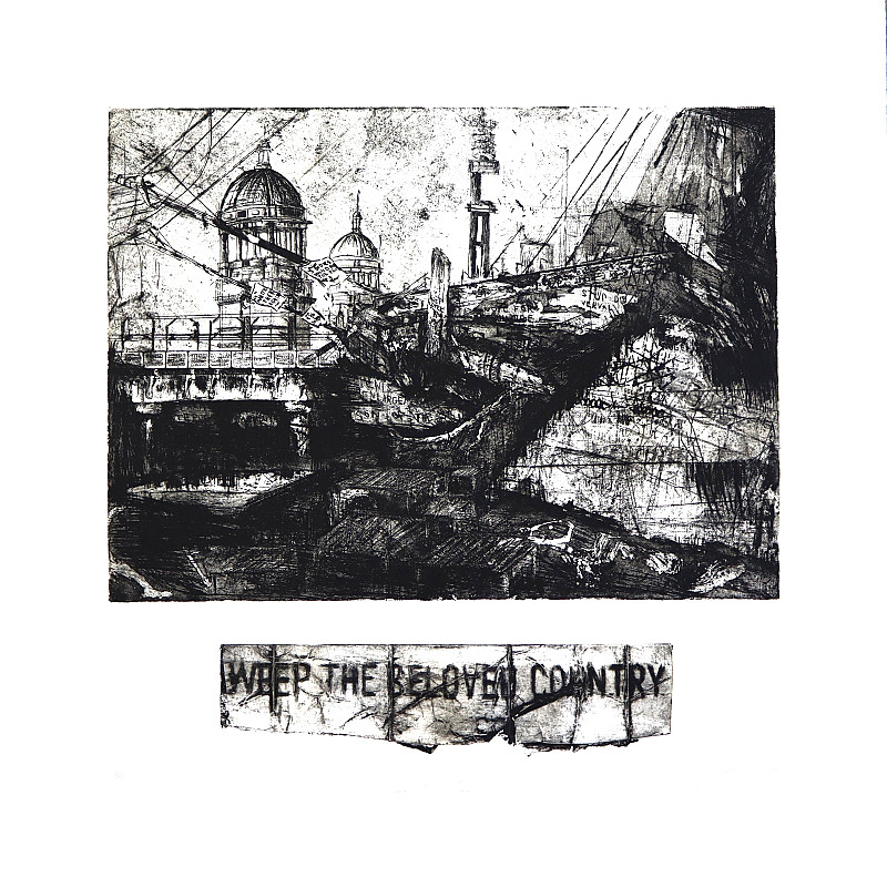 Printmaking depends on ideas of trace, layering and mark-making, making them suitable vessels for conveying these concepts. To me, mark-making plays the role of a record keeper; each mark in the print forever changes what the matrix can produce. This idea of record keeping can be seen in my work. They are bereft of people but are unmistakably lived in. Inhabiting space, as with mark-making, requires prioritizing what to preserve and what is left to decay. Preservation, neglect, and land have an especially complex relationship in South Africa. The Apartheid government’s deliberate neglect of the needs of Black South Africans left indelible marks on our everyday spaces. These marks are found next to those we carve every day. A clean steeple overlooks a dirty street; the laundry is drying, while your books collect dust. These marks come together into recognizable forms to be greater than their parts. In the same way, individual and societal histories come together in significant or banal forms. If you focus on individual marks or layers, you fail to see the merits of the whole. Accepting the present as it is, as the sum of histories, allows us to appreciate its quaint ugliness.