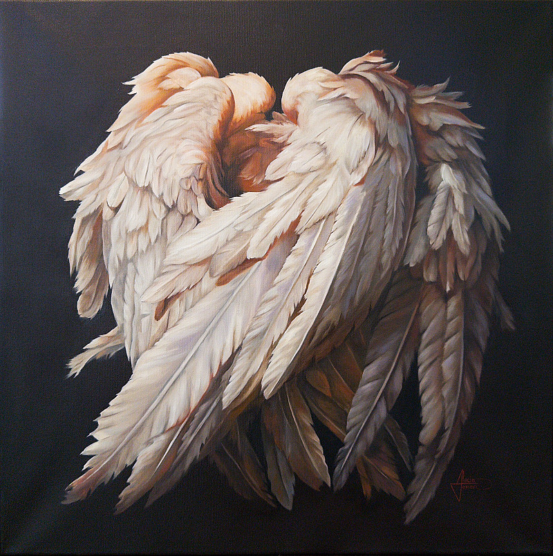 Clustered wings, stripped of flight, suggest exile from heaven. What remains is not ascent, but silence and loss.