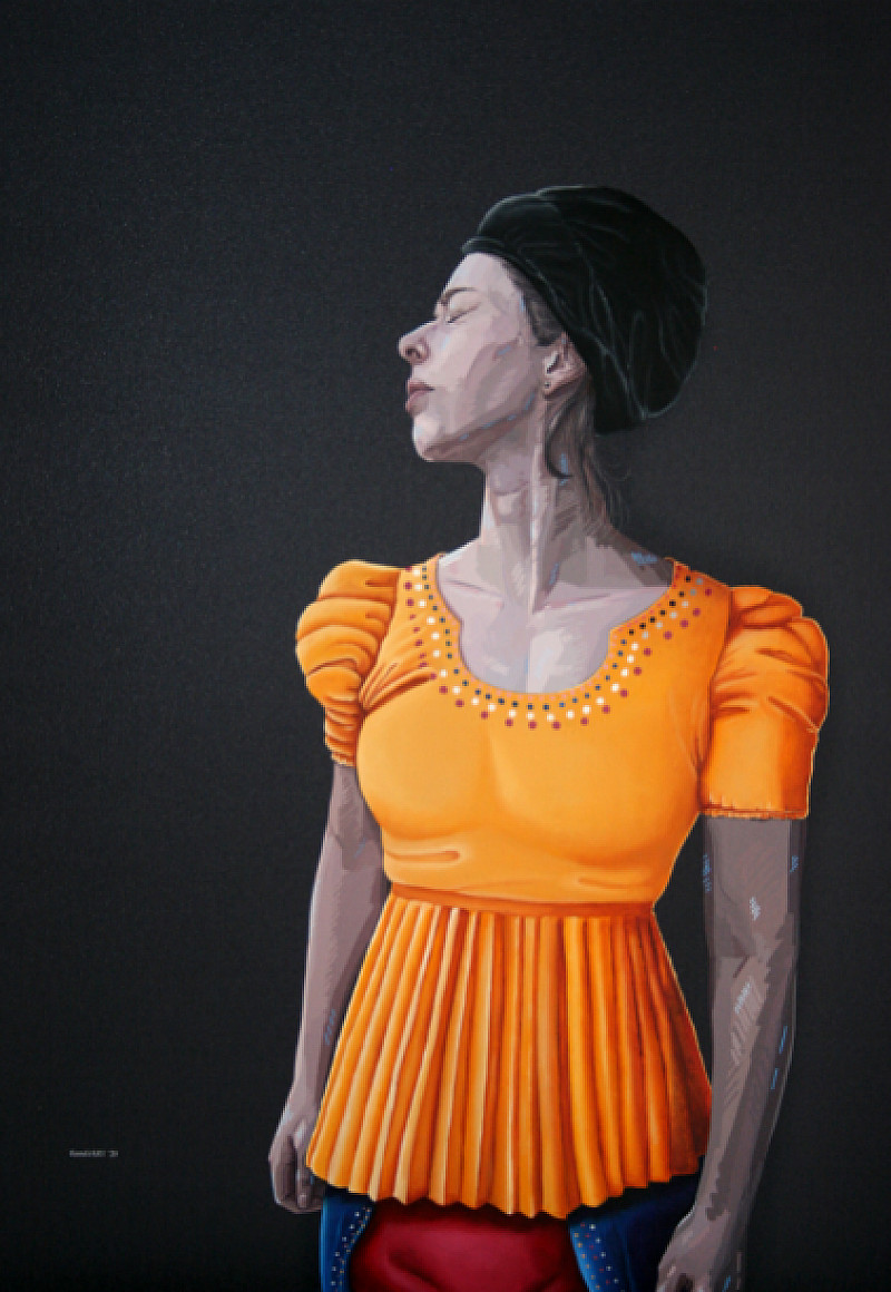 In my series I use a digital medium as well as traditional oil paint to signify the stark contrast of a white skin adorned in the most intricate traditional fashion of various ethnic groups which, by most of the younger black generation, is claimed to be cultural appropriation. I know that with any good intention, I will offend many and will be accused of cultural appropriation, even though I did my research and I truly tried to immerse myself in the history of each ethnic groups traditional clothing. I will always fall short and will always bear the reminder that no amount of appreciation for the traditional clothing or each culture will remove me from being labeled as an ignorant, uneducated, and racist person by my peers.