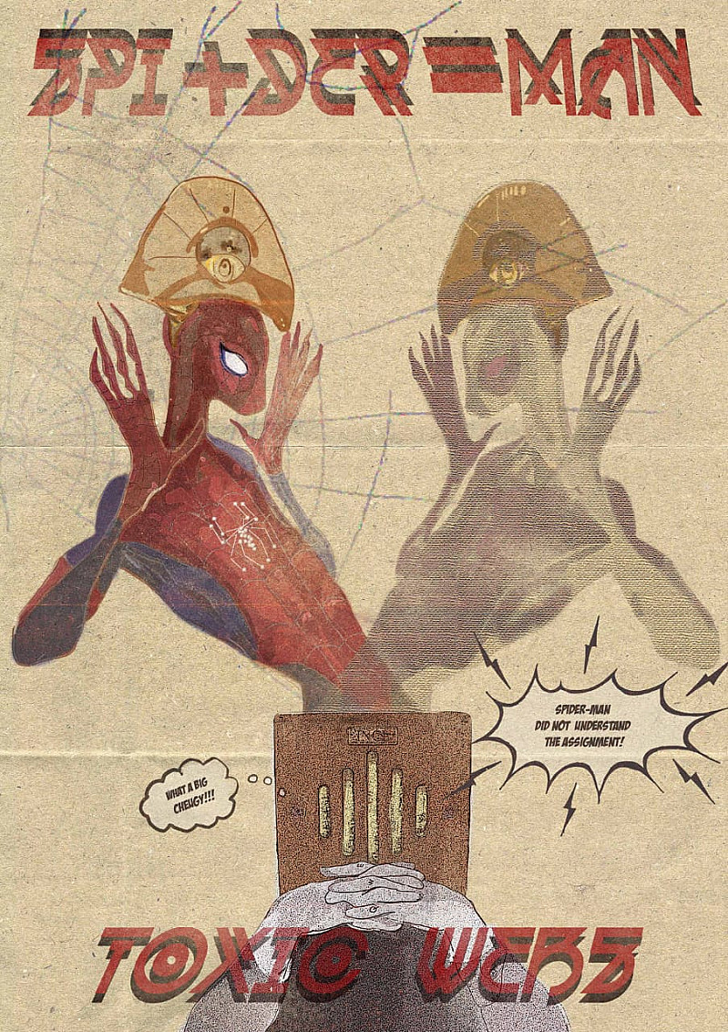 Life and death. War and peace. Creation and destruction. A cataclysmic event propels the alien being (unreadable) into the vast cosmos of space. The being crash lands on earth, encountering Ji-hun Park. Park, the survivor of a racially motivated attack. Imbued with the power cosmic, he is no longer human, no longer alien. This new being is Spi+der=Man. A hybrid hailing from the Arachnid Galaxy and earth. Spi+der=Man battles against various nefarious foes: masters of technology, hate-mongers (trolls), avarice businessmen, and apathetic elites.