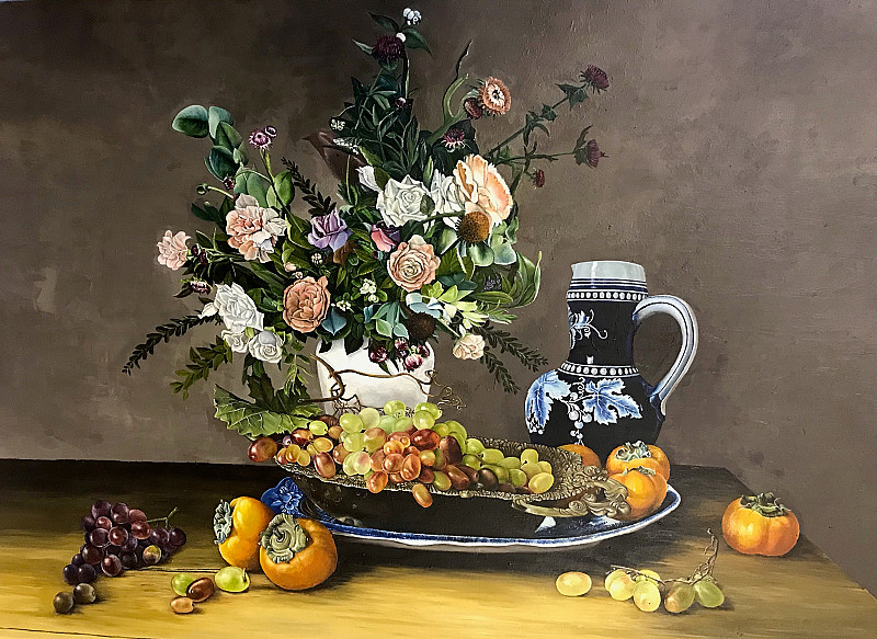 Roses and Persimmons, Roland Stanbridge , Oil on Canvas