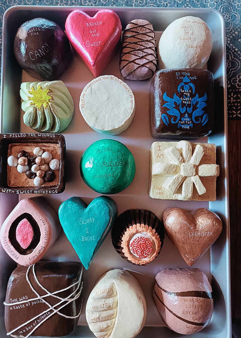 Both sweet and dangerous moments remind us of our life’s dance. This journey of celebrating love and the use of imagery related to chocolates has handed me a magical key, a sense of value of the people who give us their love to share.