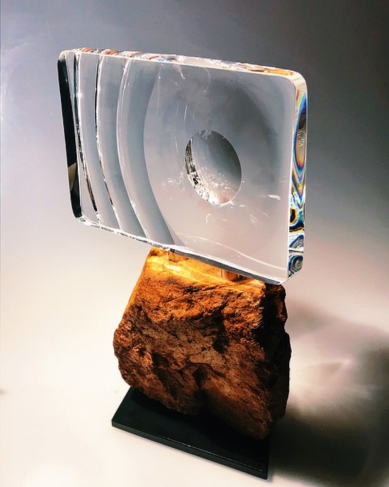 , Lothar Böttcher , Hand carved, cut and polished optical crystal, Magaliesberg quartzite, steel