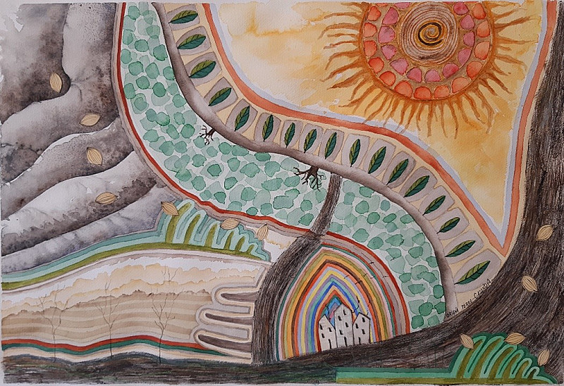 , Oriana Perez Casanova , Watercolor and collage on paper