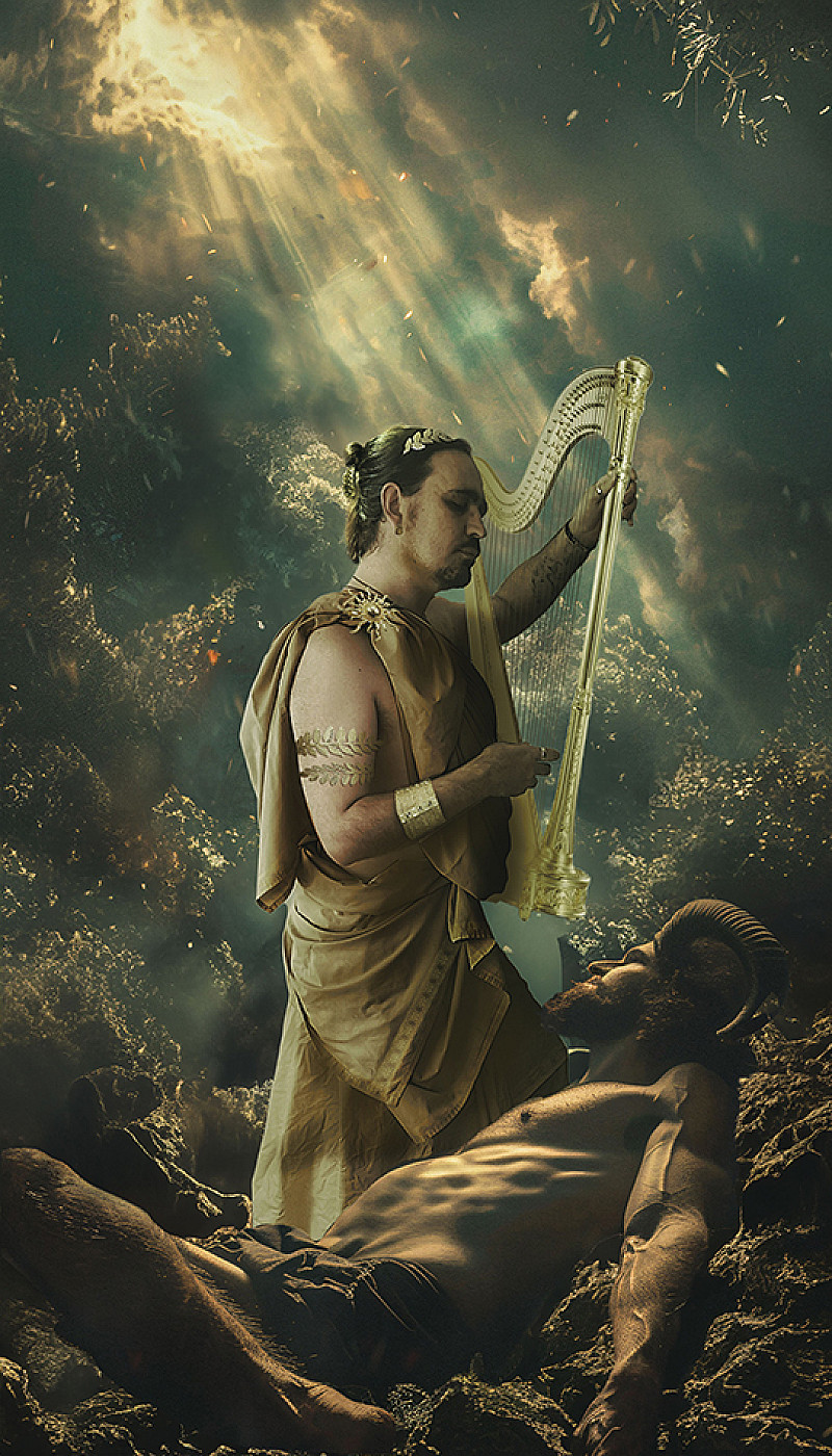 a contest of the arts. The former, Reflection of a God, depicts the musical contest between the