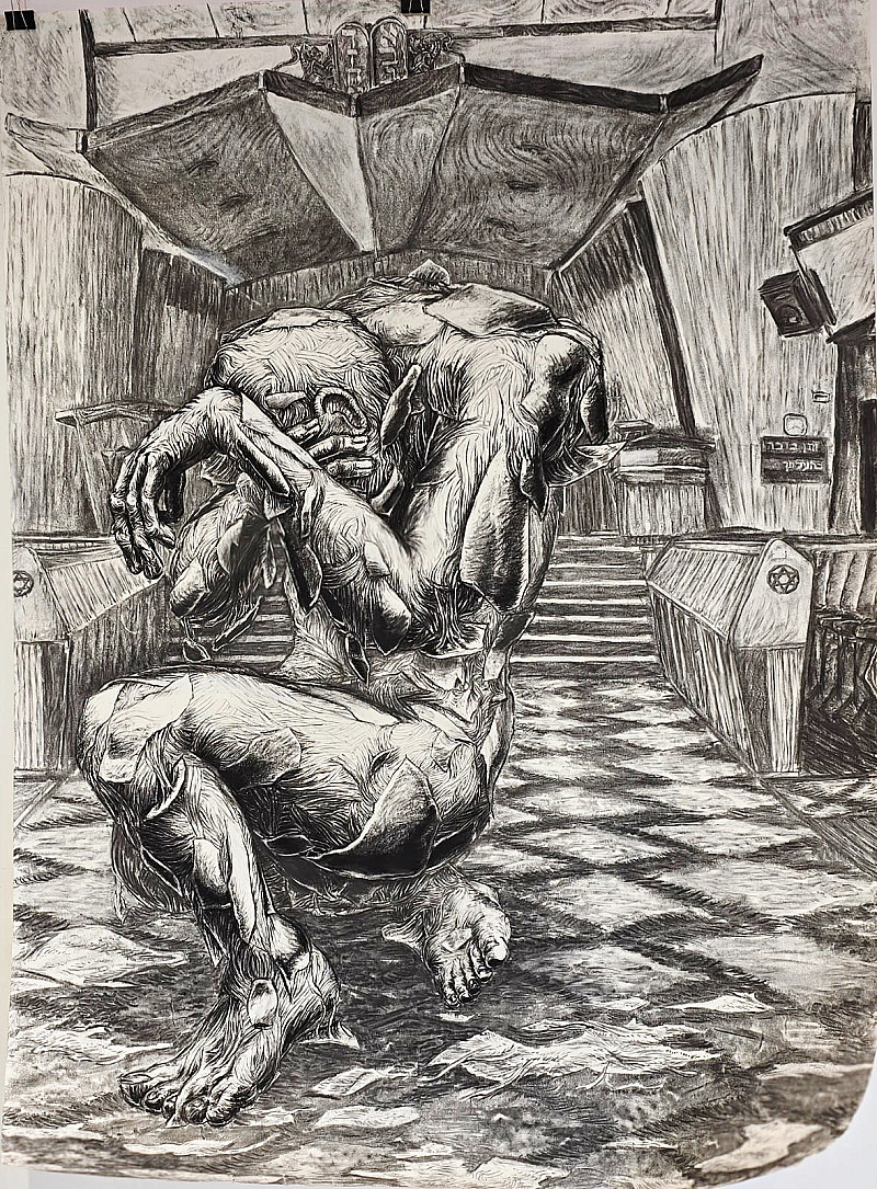 My art this past year with “Internal Dissonance” has taken many forms, including drawing, printmaking, photography, and found objects. Together, these works untangle and process my journey from an observant member of my religious community, to leaving the faith and trying to find my own place in the world. I deal with a large amount of uncomfortable feelings and stifled vulnerability. Within my community is a push and a pull - the need to draw away and define myself outside of their judgement and restrictions; and the need to be accepted and being drawn in to the genuine love with which they treat me.