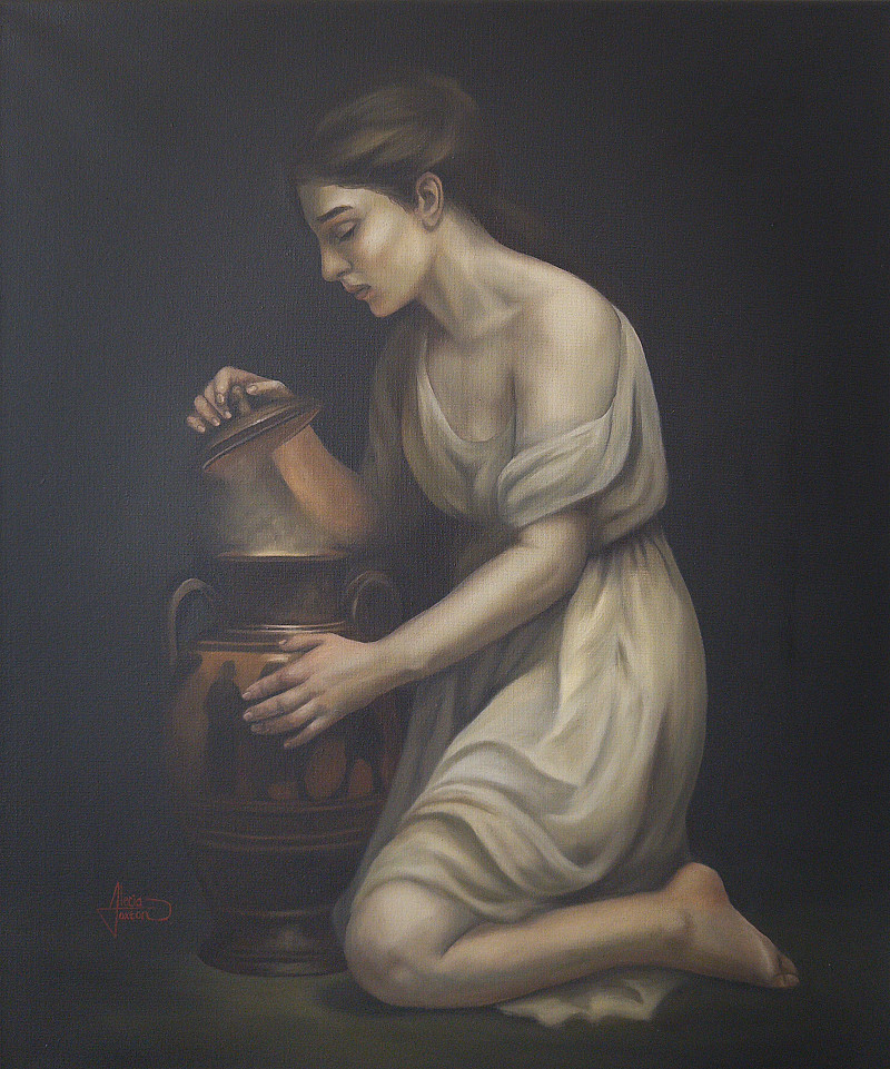 Pandora opens the jar, and all evils spill into the world. Yet hope, fragile and final, remains within.