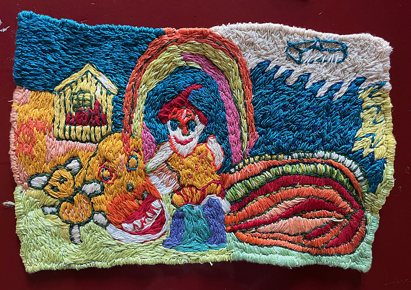 , Thelma van Rensburg , Hand embroidery and yarn on cotton fabric