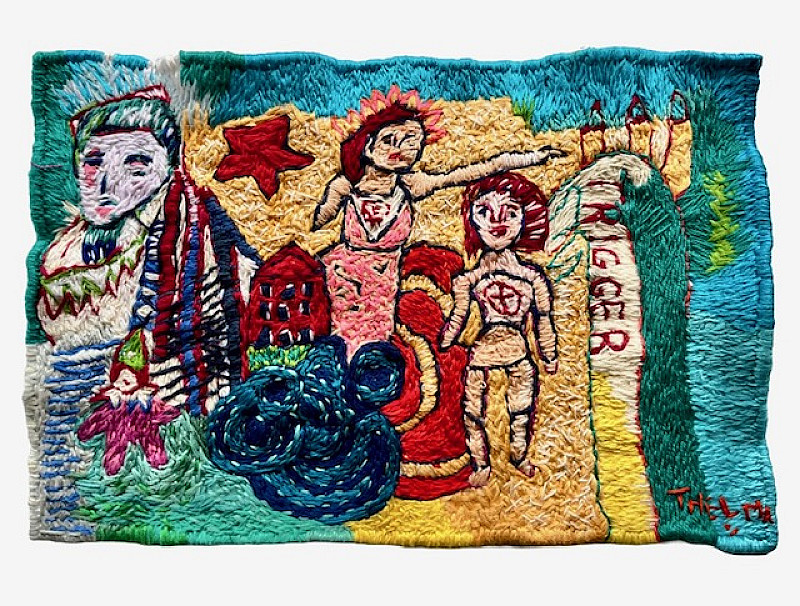 , Thelma van Rensburg , Hand embroidery and yarn on cotton fabric